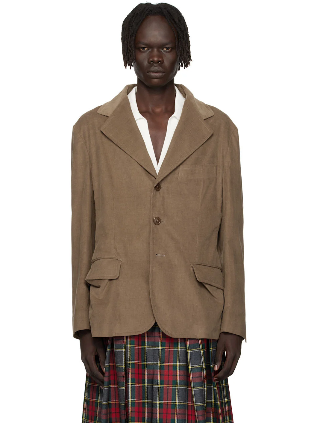 Organic cotton corduroy blazer. · Notched lapel · Button closure · Welt pocket and flap pockets · Four-button surgeon's cuffs · Twin vents at back hem · Welt pocket at interior · Fully lined Supplier color: Tobacco Body: 100% cotton. Lining 1: 100% cotton. Lining 2: 100% viscose. Trim: 100% viscose. Made in Italy 252314M195002