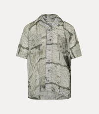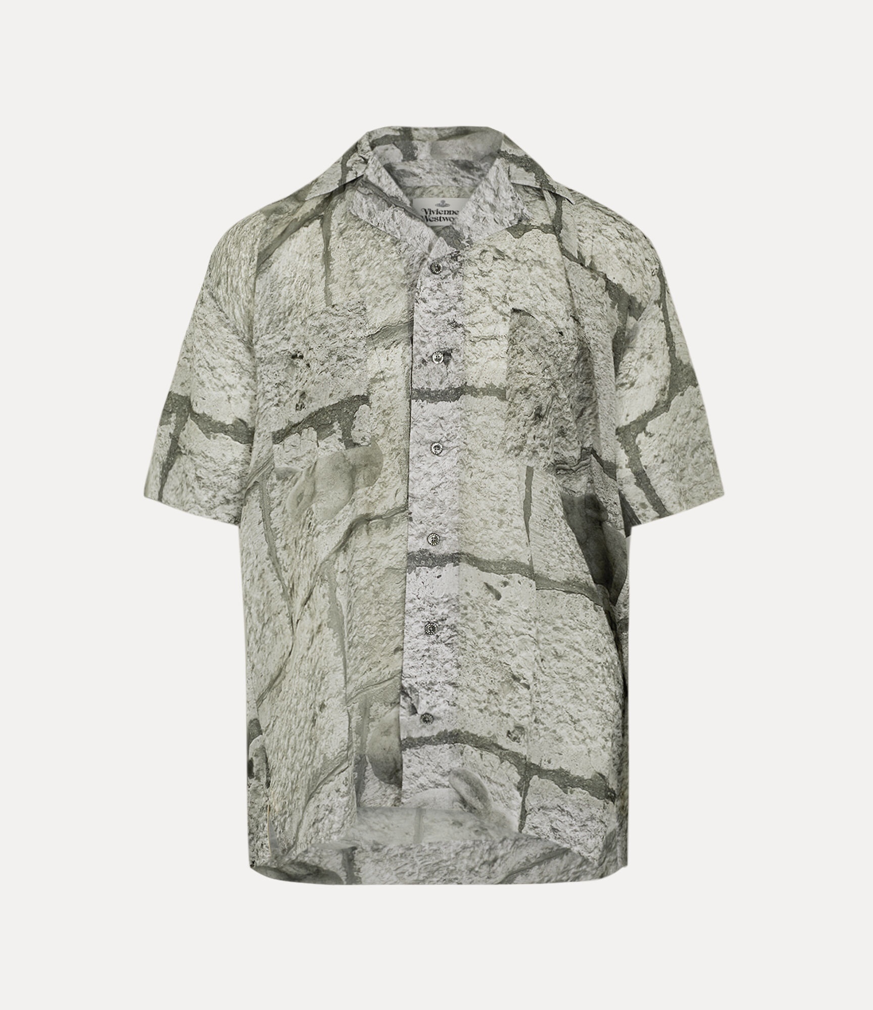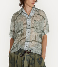 The short-sleeve Camp shirt offers the print of a rabbit motif overlaid on a brick wall background, evoking the American Dust Bowl of the 1930s, which serves as the theme for our current collection. As part of our new range, the piece is decorated with shimmering mother-of-pearl button fastenings, which are engraved with the house's refreshed branding. Code: 24010040-W00R2--RABBIT - Features a revere collar - Fits true to size, please take your normal size - Front button fastening - Short sleeves - Chest patch pockets - The model is 6’0/183cm and wearing a size 48 COMPOSITION - 100% Viscose