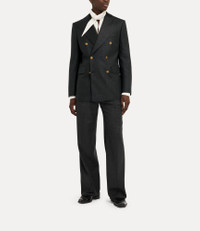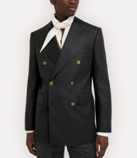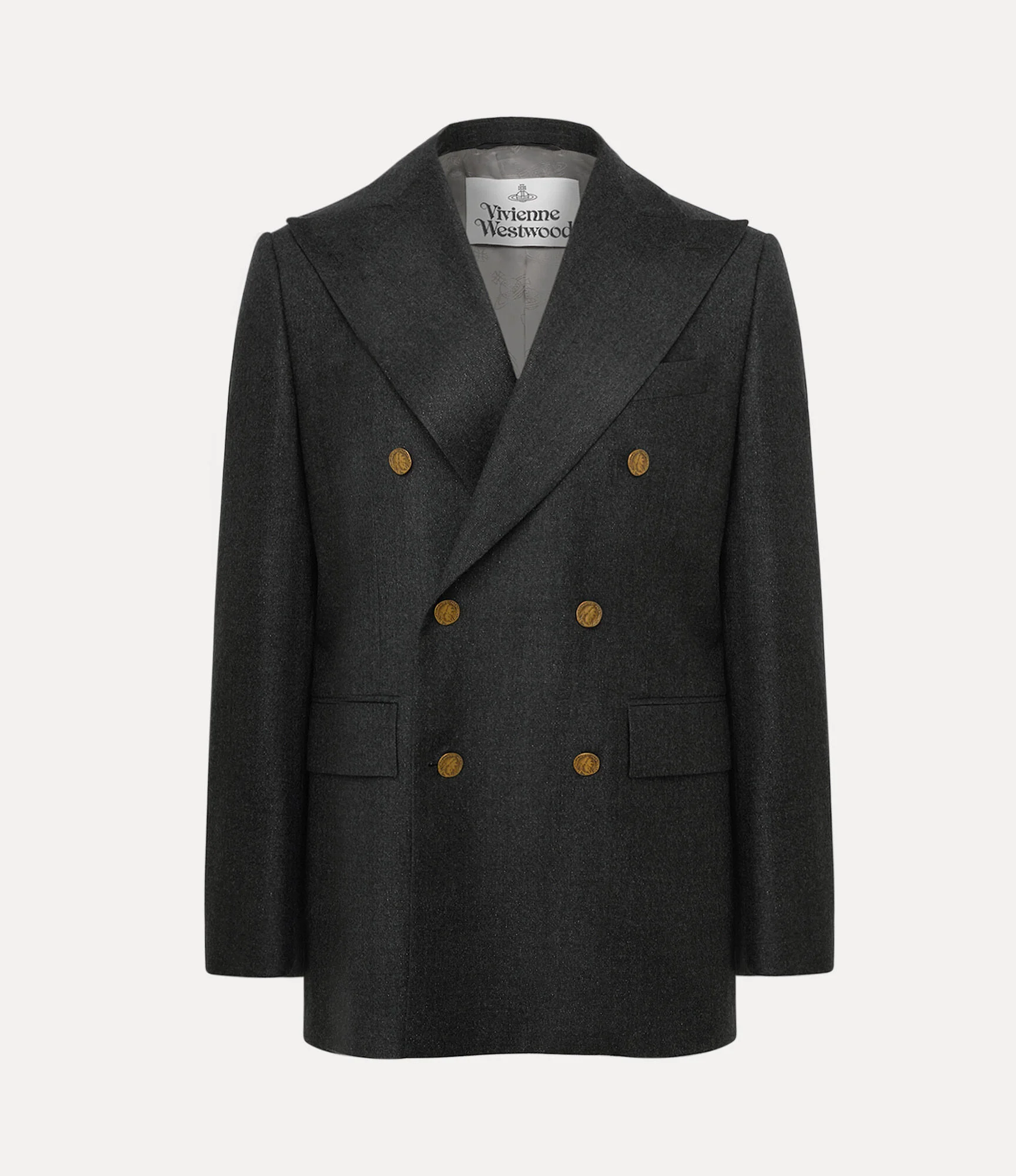 Our Captain jacket features a wool profile, delicately woven with a metallic brushed finish. Framed by sharp peak lapels, the silhouette falls to a clean hemline with rear vents, complete with our 'Tossed Orb' interior lining - synonymous with Vivienne's vision of launching tradition into the future. Code: 2301002J-W0173--CHARCOAL - Features a double-breasted front - Peak lapels - Charcoal wool fabric - Gold-tone embossed buttons - Chest welt pocket - Two front flap pockets - Three-button cuffs - Back vent - Fully lined interior - Structured, straight-cut silhouette - Made in Italy COMPOSITION - 98% Virgin wool - 1% Polyamide - 1% Metallic fibre