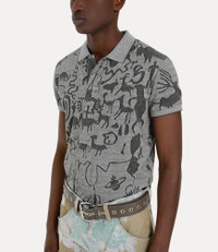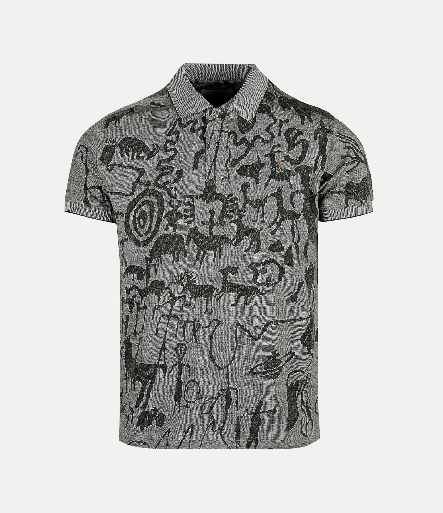 Our Classic polo with an organic-blend design features an all-over artwork that is reminiscent of the doodle-like prints in Vivienne's "Wake Up, Cave Girl" Fall 2007 collection. Code: 2H01000I-J006I--CAVEMEN - Placket fastening - Ribbed trims - Tonal stitching - Short-sleeve silhouette - Straight hem - Multicolored orb embroidery - Classic polo collar - Interior woven label - Model is 6’1/185.5cm and is wearing a size M COMPOSITION - 100% Organic cotton - This fabric contains organic cotton. Organic fibres are natural fibres grown without the use of synthetic pesticides, insecticides, or herbicides and GMOs (Genetic Modified Organisms). We are committed to using certified organic cotton as organic farming systems avoid the risks that hazardous chemicals pose to human health and the environment. They can be more financially resilient for farmers, as well as helping to replenish and maintain healthy fertile soil.