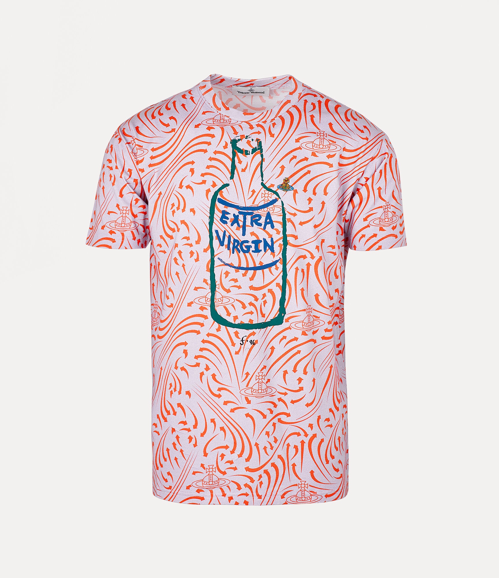 The Classic t-shirt in lavender features our 'Extra Virgin' artwork printed all over the design and a multicoloured orb to the left-hand side of the chest. Round neckline Short sleeves Tonal stitching Straight hem Regular fit Code: 3G01000GJ0044J404 Details & Features 100% organic cotton Organic farming is the only system to produce cotton entirely without the use of chemicals and pesticides, therefore avoiding the risks that such chemicals pose to human health and the environment.