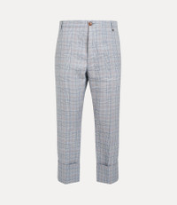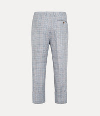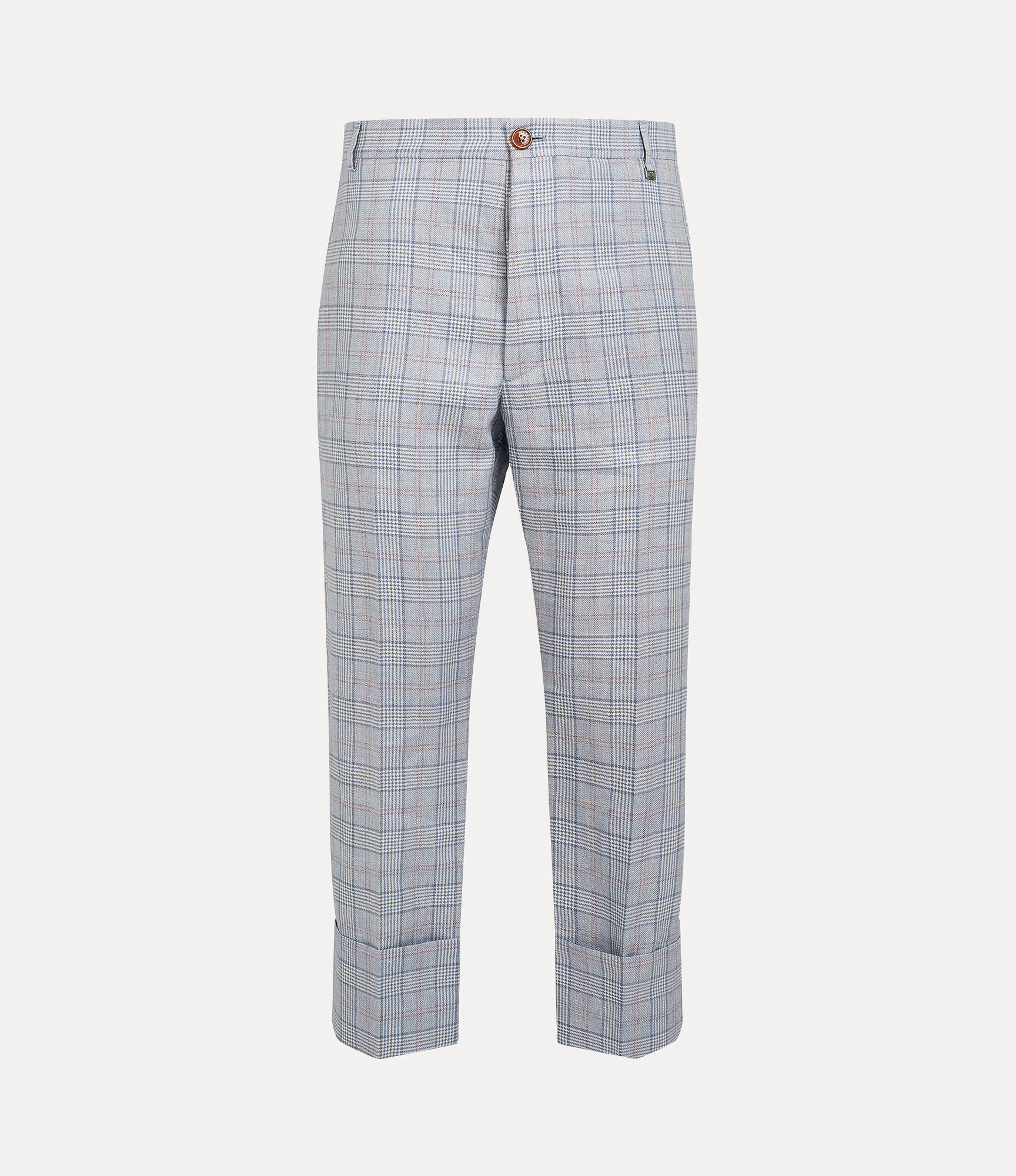 The Cropped George trousers offer the Prince of Wales check motif across the design - drawing inspiration from Scottish Highland regalia. The piece features exaggerated turn-up cuffs, adorned with an orb-engraved metal tab on the front belt loop, complete with a silver-toned brass finish. Code: 2F01001K-W013L--MULTI - Features a mid waist - Slim cut - Cropped leg - Belt loops - Two lined pockets - Dart detailing - Rear button-fastening pocket - Button fly fastening - Model is 6'0/183cm and is wearing a size 48 COMPOSITION - 50% Wool - 50% Linen