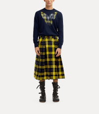 Our Culottes feature this season's woollen 'Moonshine' tartan motif, complete with vibrant hues and our signature letter-branded amber button fastening. The piece offers a wide-leg design, finished with a metal tab and an engraved detail adorning the front belt loop. Code: 3F01000C-W0175--NAVY-YELLOW - Features a mid-rise waistband - Fit true to size, take your normal size - Unisex design - Concealed side pockets - Front zip - Pressed pleats - Dropped crotch - Tonal stitching COMPOSITION - 100% Wool