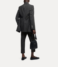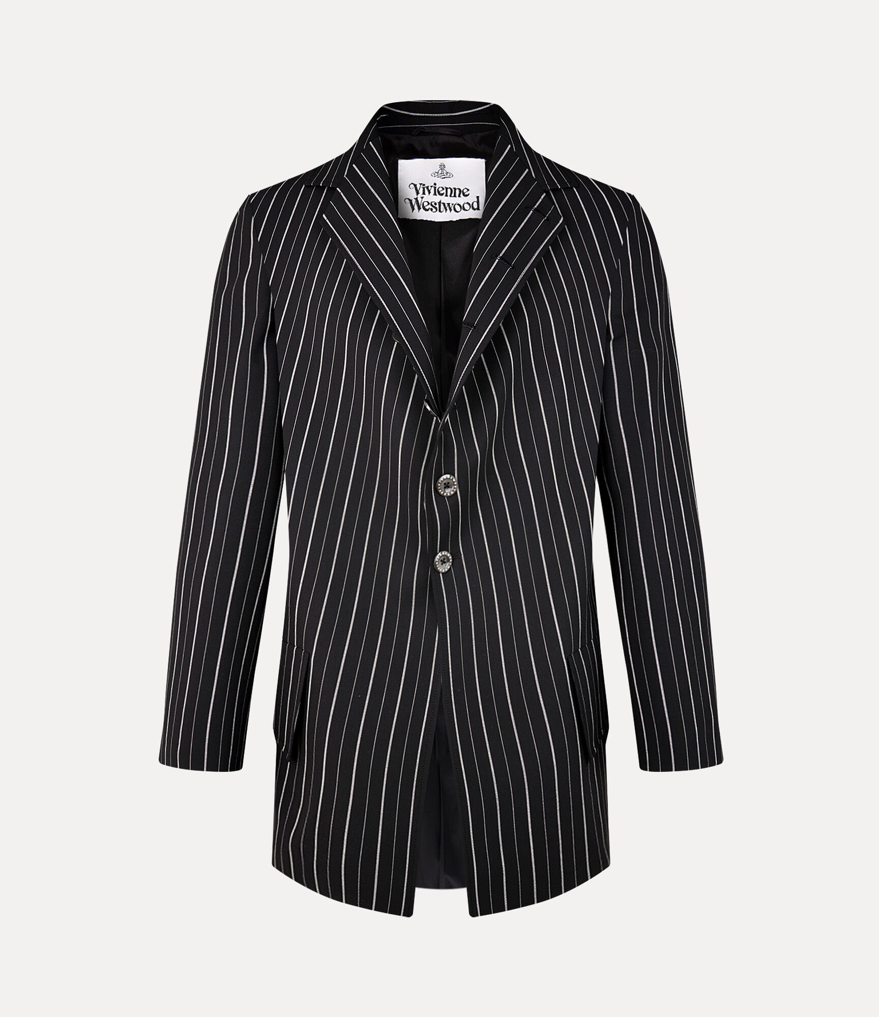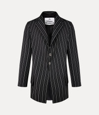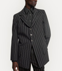 The DL jacket features a classic pinstripe pattern, full sleeves, and a statement lapel, drawing inspiration from the revival of extravagant court styles after the French Revolution. Part of our latest collection, the design is enhanced with a longline, single-breasted silhouette and an engraved mother-of-pearl fastening. Code: 2301001Y-W0123--BLACK - Features two front flap pockets - Regular fit - Double rear vents - Buttoned cuffs - Lined interior - Woven label - Asymmetrical hemline - Made in Italy COMPOSITION - 95% Wool - 5% Elastane