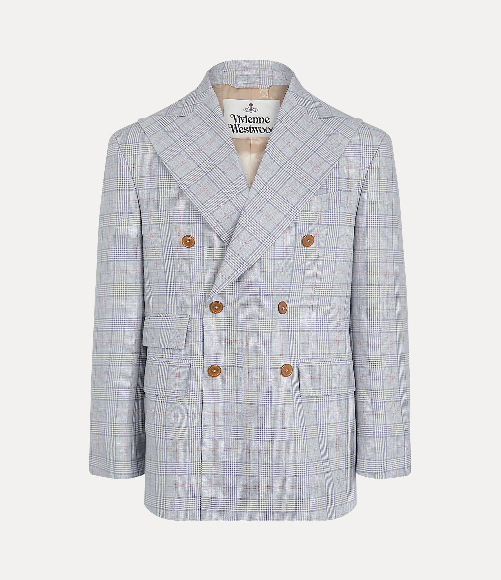 The classic Double Breasted Niesen jacket has been revived this season, offered in a wool-blend Prince of Wales check, featuring branded buttons that are engraved with the house's lettering motif. The piece is designed with peak lapels and an orb jacquard lining - synonymous with Vivienne's vision of taking tradition into the future. Code: 8053195169771 - Features long sleeves - Double-breasted silhouette - Flap pockets - Tonal stitching - Darting at the front - Front pocket - Made in Italy COMPOSITION - 50% Wool - 50% Linen