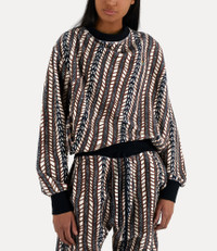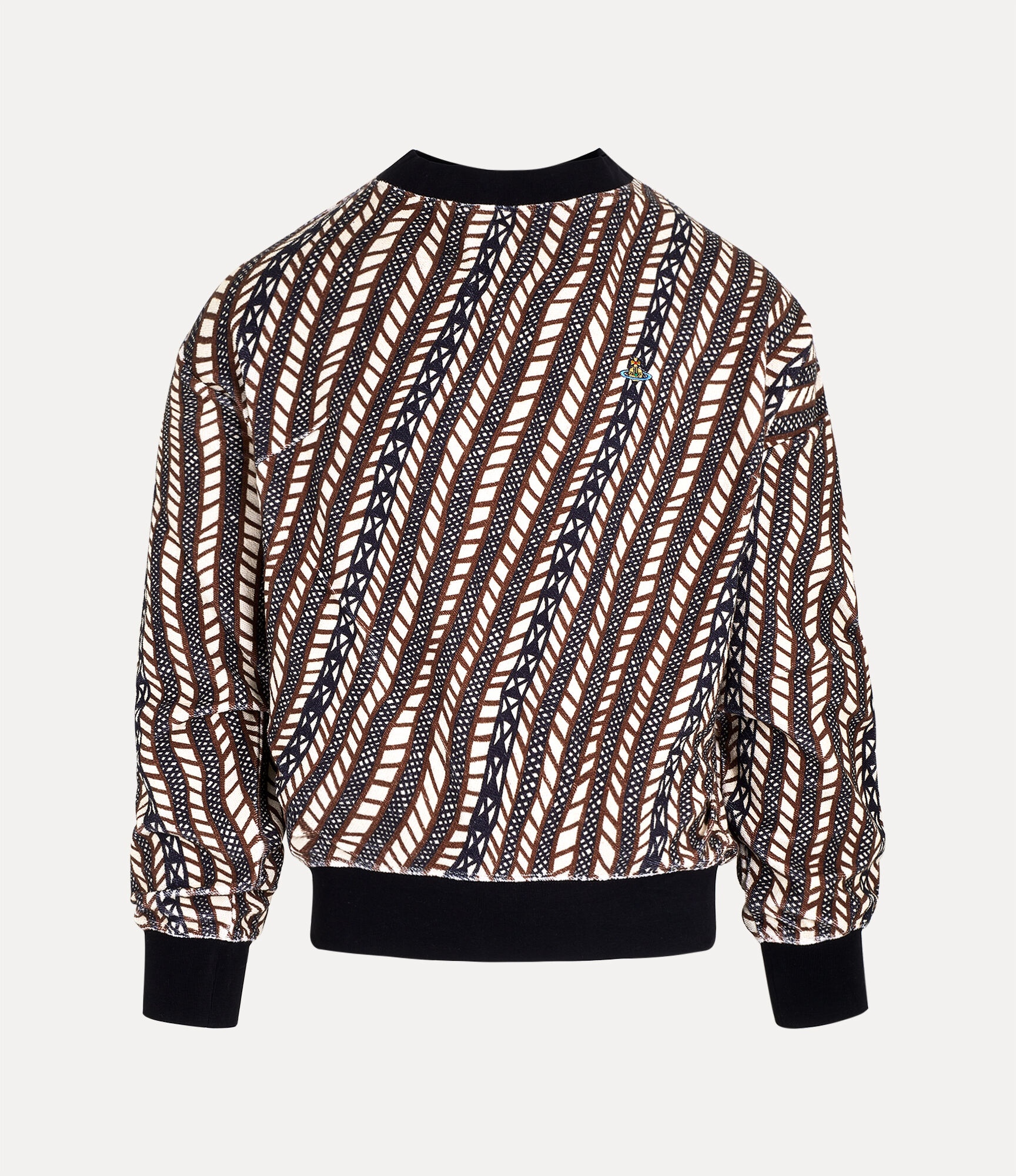 The Drunken sweatshirt is made from organic cotton and features elements of Vivienne’s trademark ‘Drunken’ system, including a seam at the back of the garment. Branded with a multicoloured orb motif on the right-hand side, it is patterned with a Berber-inspired print and fitted with a crew neckline. Organic farming is the only system to produce cotton entirely without the use of chemicals and pesticides, therefore avoiding the risks that such chemicals pose to human health and the environment. Material 100% Organic Cotton Code: 3I010001J003GO316 Details & Features Round neckline Long-sleeved Ribbed trims Orb embroidery Loose fit Model is 6’0/183cm and is wearing a size M