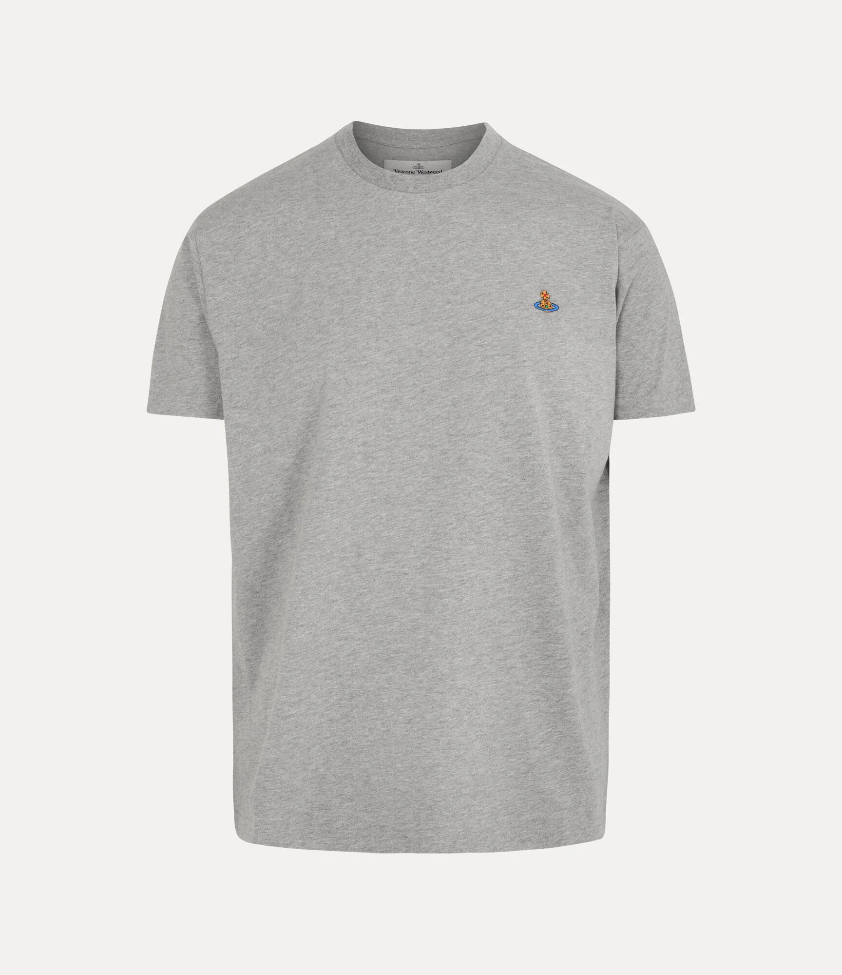 Our Classic t-shirt features a soft cotton silhouette, complete with short sleeves and a round neckline. The piece receives a multi-coloured orb embroidery on the left-hand side of the chest - synonymous with Vivienne's vision of taking tradition into the future. Code: 3G010013-J001M--GREY-MELANGE - Features ribbed trims - Fits true to size, please take your normal size - Straight hemline - Tonal stitching - Lightweight - Non-stretch fabric - The model is 5'11/180cm and is wearing a size S - The model is 6’0/183cm and is wearing a size M COMPOSITION - 100% Cotton