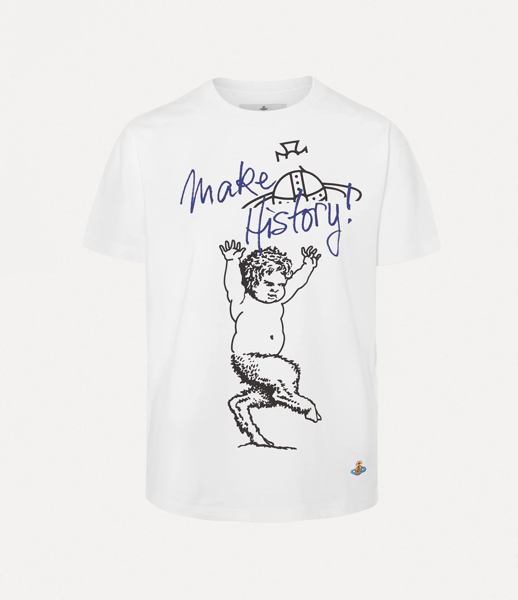 The Fawn Classic t-shirt offers a crew neckline, adorned with ribbed details at the trims for a classic finish. The piece features the house's 'Fawn' motif, first seen in the Autumn-Winter 2002 ‘Anglophilia’ collection, complete with the 'Make History' slogan - echoing one of Vivienne's key messages on climate change. Code: 3G010048-J001M--WHITE - Features a unisex design - Fits true to size, please take your normal size - Ribbed neckline - Short sleeves - Orb embroidery - Straight hemline - Tonal stitching - Lightweight - Non-stretch fabric COMPOSITION - 100% Organic cotton - Organic fibres are natural fibres grown with strict rules concerning the use of synthetic pesticides, insecticides, or herbicides and GMOs (Genetic Modified Organisms).