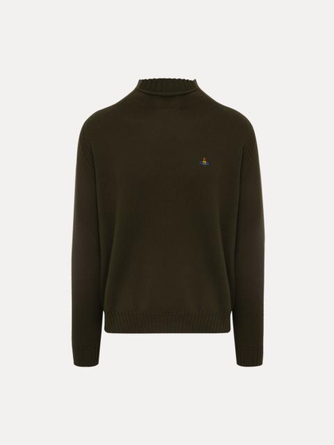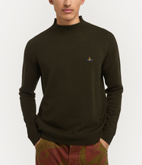 Our Fisherman jumper is crafted from soft wool, featuring a ribbed neckline that extends into a straight hem. Finished with long raglan sleeves with ribbed cuffs, the piece is adorned with a multicoloured embroidered orb on the left-hand side of the chest, recalling Vivienne's vision of launching tradition into the future. Code: 27010017-Y002M--KHAKI-MELANGE - Features a fine knit texture - Fits true to size - Ribbed mock neck collar - Long raglan sleeves with ribbed cuffs - Ribbed hemline - Signature embroidered multicoloured orb - Straight, slightly boxy silhouette - Midweight knit - Relaxed yet tailored fit - Tonal stitching - Made in Italy COMPOSITION - 100% Merino wool