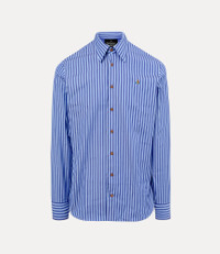 This season, the Ghost shirt is reimagined in soft cotton with a vertical stripe motif, finished with the house’s classic amber-coloured button fastenings. Embroidered with a multi-coloured orb motif at the left chest, the design reflects Vivienne’s vision of launching tradition into the future. Code: 2401000J-W018S--BLUE-STRIPE - Features a classic pointed collar - Fits true to size - Tailored regular fit - Long sleeves with buttoned cuffs - Full front-button fastening - Curved hemline - Lightweight design - Tonal stitching throughout - Model is 6'1.5/187cm and wearing a size 48 COMPOSITION - 100% Organic cotton - Organic fibres are natural fibres grown with strict rules concerning the use of synthetic pesticides, insecticides, or herbicides and GMOs (Genetic Modified Organisms).