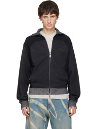 Organic cotton-blend French terry jacket. · Paneled construction · Open-knit detailing throughout · Rib-knit stand collar, hem, and cuffs · Two-way zip closure · Embroidered logo patch at chest · Seam pockets at waist Supplier color: Charcoal Body: 80% cotton, 20% polyester. Trim: 98% cotton, 2% elastane. Made in Turkey 252314M180001