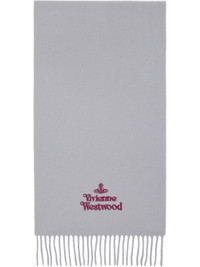 Rectangular wool flannel scarf. · Logo embroidered at face · Fringed detailing at ends · L71" x W12" Supplier color: Light grey 100% wool. Made in Italy 252314M150033