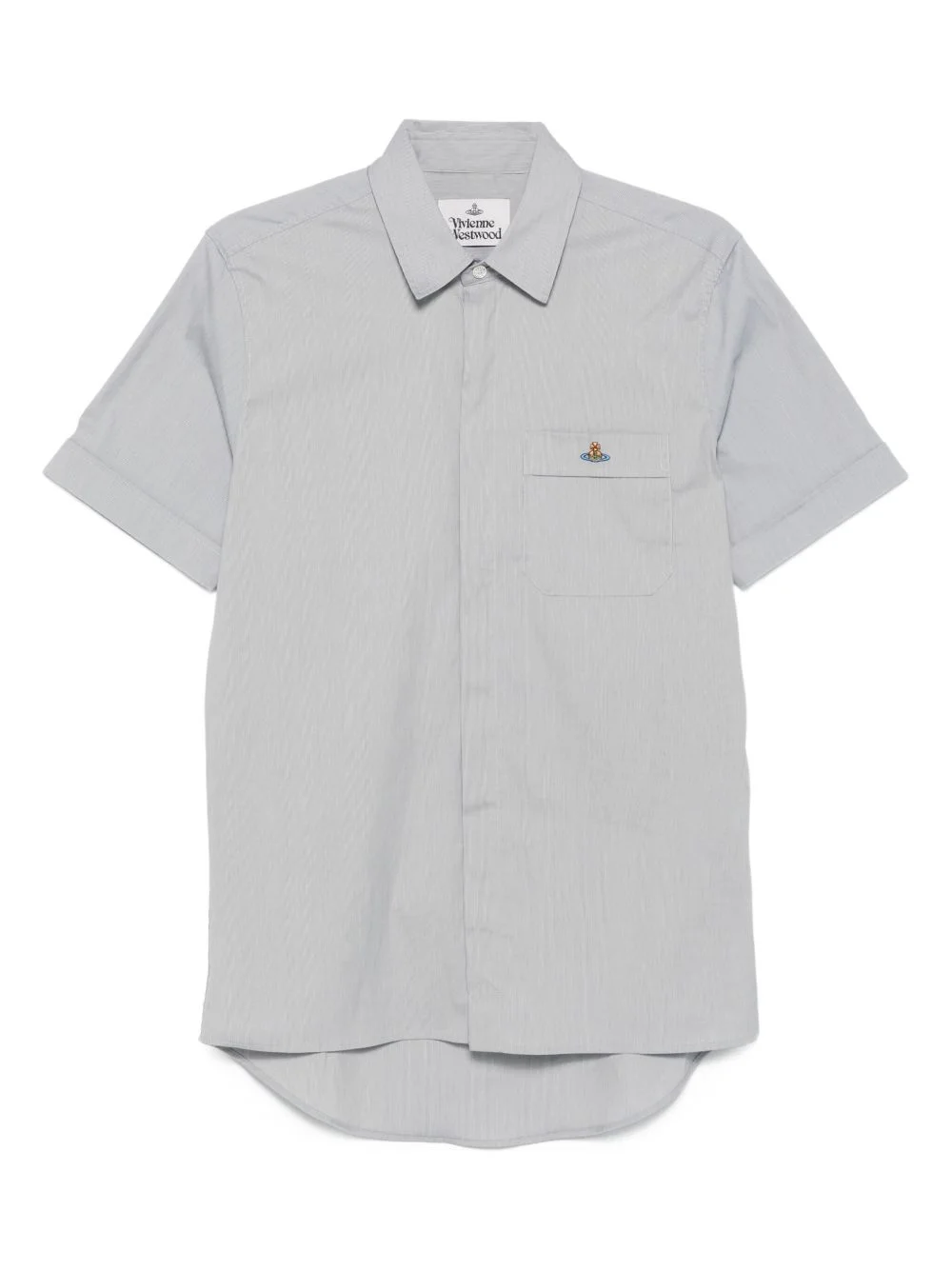 Orb-embroidered short-sleeve shirt Highlights - Grey - Short sleeves - Front button fastening - Curved hem - Chest patch pocket - Signature orb logo embroidery Imported Composition Cotton 69%, Nylon 28%, Elastane 3% SIZE & FIT Model measurements Height 6 ft 2 in(1.87 m) Bust/Chest 37.79 in(96 cm) Hips 37.79 in(96 cm) Waist 30.31 in(77 cm) FittingInformation Designed for a relaxed fit, this piece allows for comfort and movement when worn Made from a midweight stretch fabric, this piece offers elasticity and flexibility when worn Washing instructions Machine Wash