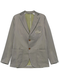 Froh blazer Highlights - Battleship grey - Front button fastening - Buttoned cuffs - Chest patch pocket - Two front patch pockets Made in Italy Composition Outer: Cotton 100% Lining: Recycled Cupro 100%, Cotton 100% SIZE & FIT Model measurements Height 6 ft 2 in(1.89 m) Bust/Chest 35.03 in(89 cm) Hips 38.18 in(97 cm) Waist 29.92 in(76 cm) FittingInformation Designed for a slim fit, offering a comfortable fit that sits just away from the body Made from a midweight non-stretch fabric