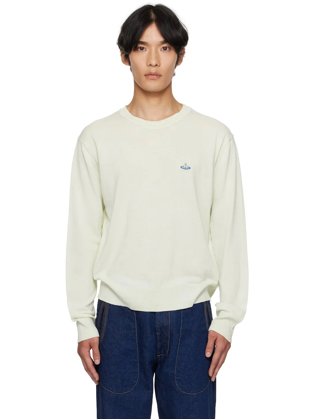 Lightweight knit organic Mako cotton sweater. · Rib-knit crewneck, hem, and cuffs · Embroidered logo at chest · Chain-stitched logo at front hem Supplier color: Pistachio 100% organic cotton. Made in Italy 251314M201014
