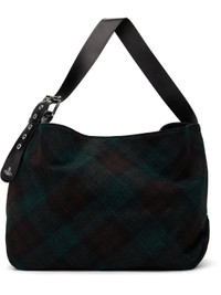 Hand-woven virgin wool Harris Tweed® messenger bag. · Check pattern throughout · Adjustable crossbody strap · Logo patch at face · Magnetic closure at throat · Zip pocket at interior · Canvas lining · Logo-engraved silver-tone hardware · H13" x W19" x D9" Supplier color: Dark check Wool. Made in Italy 252314M170046