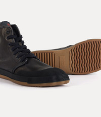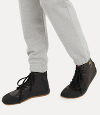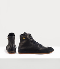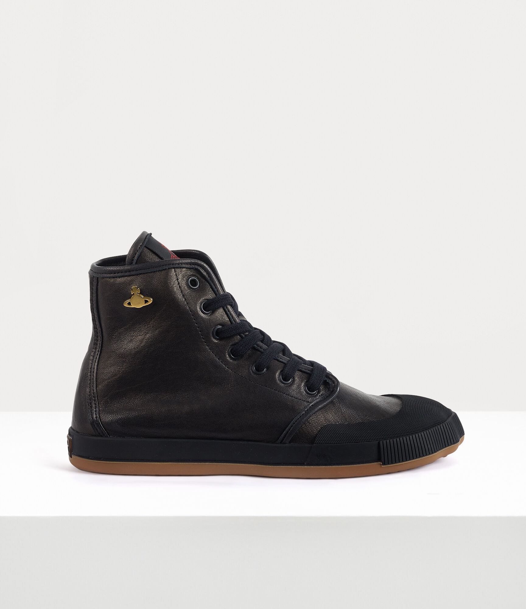 Our Animal Gym trainers in washed leather showcase a high-top silhouette, accented with this season's reimagined orb in antique gold-tone plating. Drawing inspiration from Vivienne's iconic past designs, these trainers highlight an animal-inspired toe shape, a signature detail from the archives. Code: 7502005AM-L0095--BLACK - Plaque motif - Lace-up design - Seven eyelets - Woven label at tongue - Embossed branding on sole - Tonal stitching COMPOSITION - 100% Leather