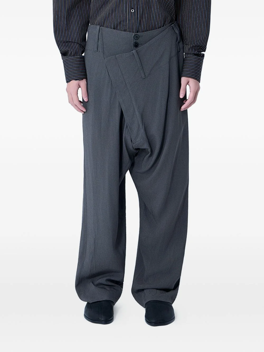 drop-crotch trousers Highlights - Grey - Belt loops - Button fastening Made in Italy Composition Viscose 88%, Polyester 12% Washing instructions Read Manufacturer Guidelines