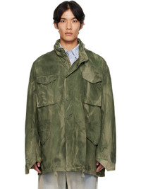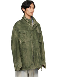 Overdyed organic cotton twill jacket. · Fading throughout · Drawstring at stowaway hood · Velcro tab at stand collar · Two-way zip closure and press-stud placket · Embroidered logo and bellows pockets at chest · Flap pockets and concealed drawstring at waist · Drawstring at hem · Epaulets · Dropped shoulders · Tucks at sleeves · Velcro tab at cuffs · Pleats at back · Full organic cotton twill lining Supplier color: Green overdye Body: 100% organic cotton. Lining: 100% organic cotton. Made in Turkey 251314M180005