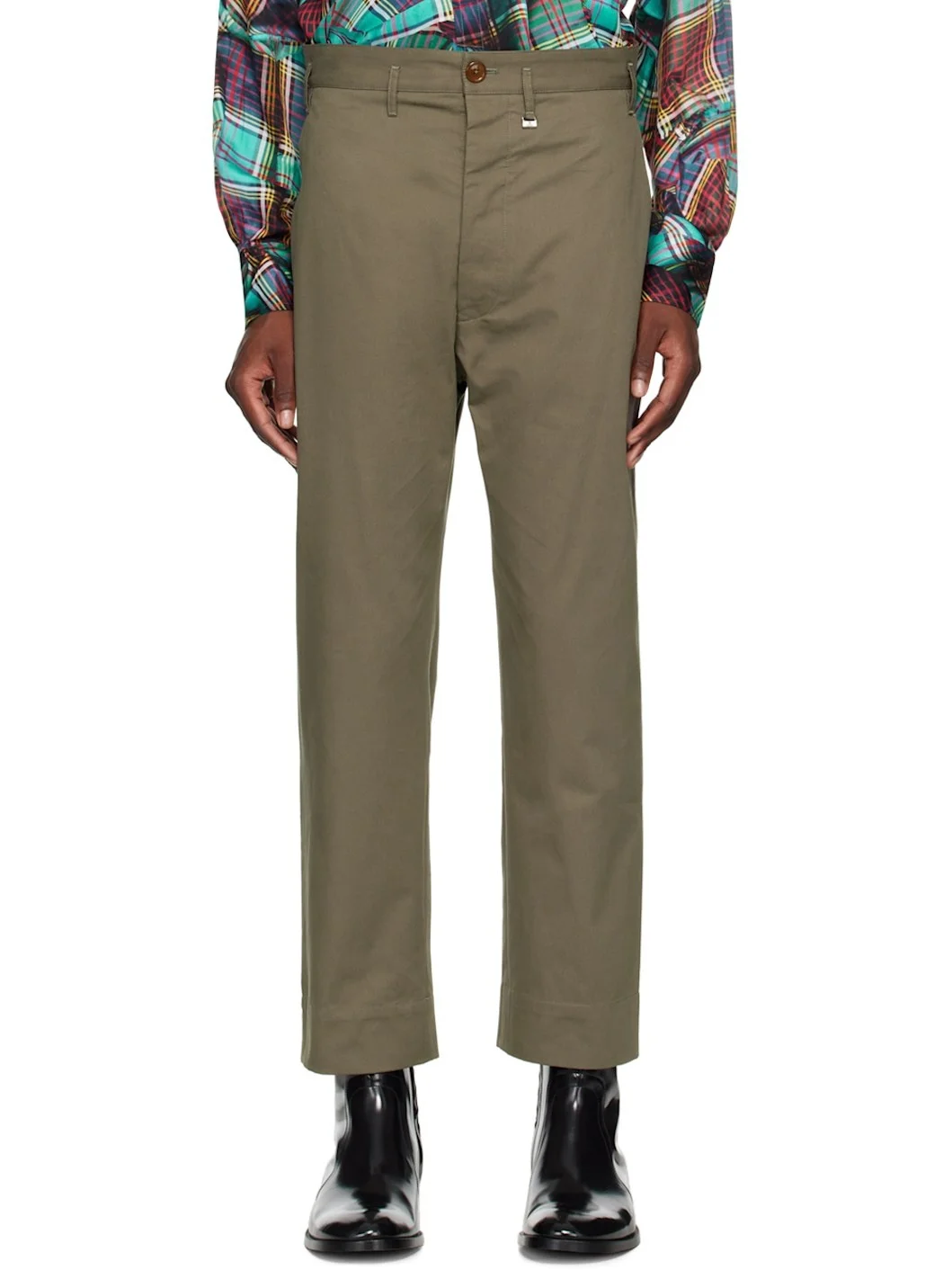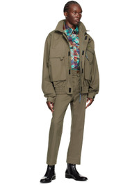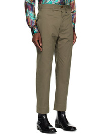 Peached organic cotton twill trousers. · Mid-rise · Belt loops · Three-pocket styling · Button-fly · Logo charm at front · Cropped legs · Notch at back waistband · Logo graphic printed at partial cotton poplin lining Supplier color: Khaki Body: 100% organic cotton. Lining: 100% cotton. Made in Italy 242314M191021