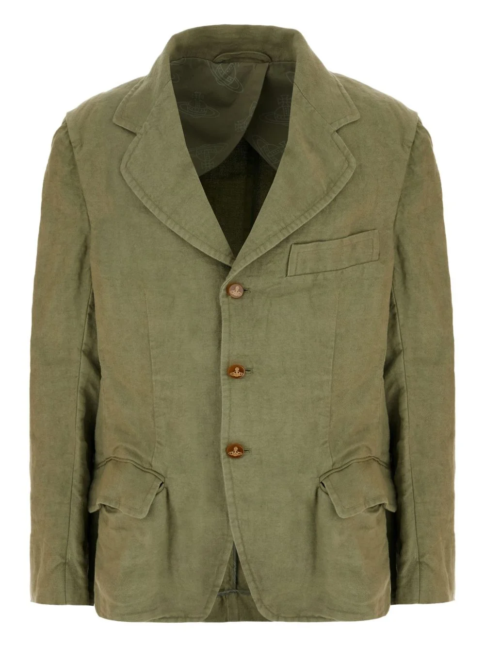 buttoned blazer Highlights - Sage green - Single breasted - Button fastening - Flap pockets - Buttoned cuffs - Notched lapel Imported Composition Cotton 100% Washing instructions Read Manufacturer Guidelines