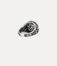 The Lancelot Chevalier ring draws inspiration from traditional signet rings, featuring the classic orb motif embossed on its face. Finished in platinum tones with antique-effect detailing, the ring is intricately inscribed with signature motifs and phrases, embodying the house’s rebellious spirit. Code: 6404018P-01P017--ANTIQUE-PLATINUM - Features a signet-style silhouette - Platinum-tone plating - Inscribed with house motifs - Wide band design - Engraved inner - Embossed orb motif - Textured surface with oxidised accents - Unisex design COMPOSITION - Main material: 100% recycled silver - Platinum-tone plating - We plate all our sterling silver products, as this prevents tarnishing and increases durability.