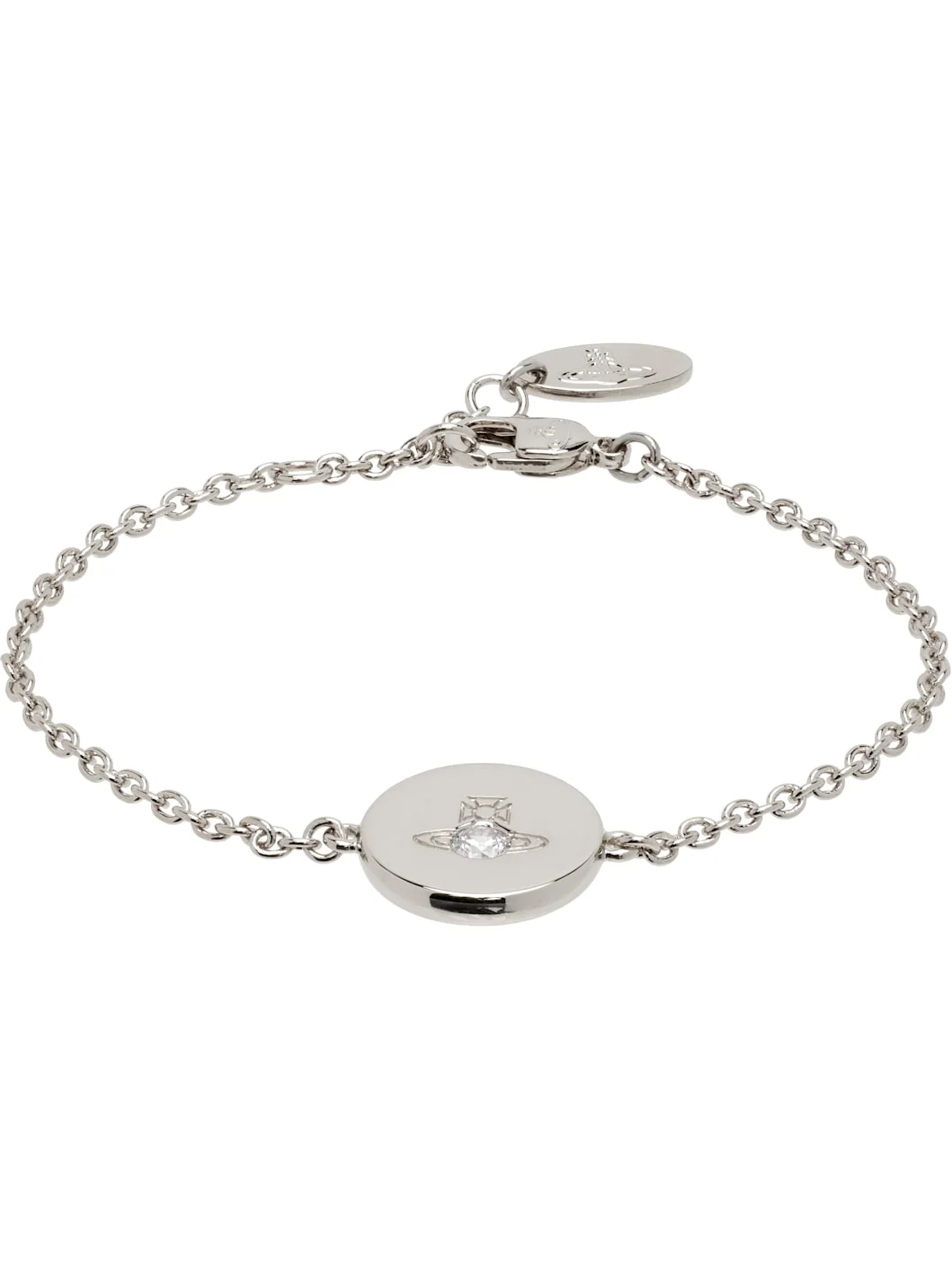 Rolo-chain bracelet in silver-tone brass. · Logo disc with crystal at face · Hallmarking at disc · Logo plaque at adjustable lobster-clasp fastening · L7.5" Supplier color: Platinum/White Brass. Made in Thailand 252314M142020