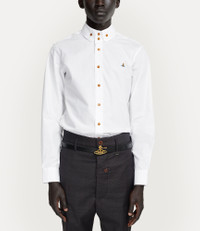 This season's Two Button Krall shirt is inspired by an archive design, featuring the house's distinctive two-button collar. The piece receives our signature orb embroidery at the front of the design, representing Vivienne's vision of launching tradition into the future. Code: 24010005-W009Q--WHITE - Features long sleeves - Front-button fastening - Slightly curved hemline - Single-button barrel cuffs - Fitted design - Fits true to size - Model is 6'1.5/187cm and wearing a size 48 COMPOSITION - 100% Organic cotton