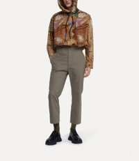 Our M Cropped Cruise trousers receive our archive 'Rubbish' lining in the pocket and at the waistband—a collage of packaging and cardboard images evoking the concept of upcycling newspapers by using them to wrap valuable ornaments when moving house. As part of our new range, this style is branded with the orb tab in a metal finish. Code: 2F01000L-W00VK--KHAKI - Tonal stitching - Belt loops - Cropped silhouette - Darting detailing - Mid-rise waistband - Fits true to size - Button and zip-fly fastening - Made in Italy - Our model wears a size 48 COMPOSITION - 100% Cotton