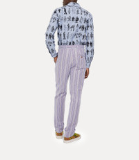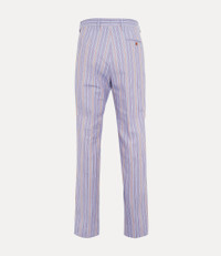 Our Cruise trousers in cotton feature a mid-rise waistband with pastel stripes, reminiscent of an early costume design sketch by Pablo Picasso for the ballet 'Le Tricorne'. The trousers are tailored for a slim fit and fasten at the front with an amber button. Code: 8050889802051 - Tonal stitching - Belt loops - Darting detailing - Mid-rise waistband - Straight leg - Button and zip-fly fastening - Model is is 6’0/183cm and is wearing a size 48 COMPOSITION - 100% Cotton