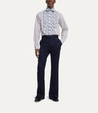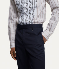 The M Ray trousers are a development of the archive Ray trousers, first shown in the Vivienne Westwood Autumn-Winter 1982-83 'Savages' collection. The flared silhouette adopts our new resin-coated buttons and features this season's engraved orb detail on the front belt loop. Code: 2F010016-W00QN--NAVY - Made in Italy - Mid-rise silhouette - Flared finish - Two side pockets - Rear pocket - Pleat detail COMPOSITION - 100% Wool