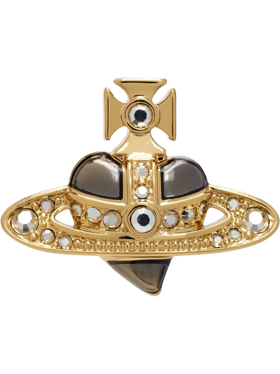 Single stud earring in gold-tone brass. · Enameled logo with pave-set crystals at face · Post-stud fastening · H0.5" x W0.75" Supplier color: Gold/Labrador Crystal Brass. Made in Thailand 261314M144036
