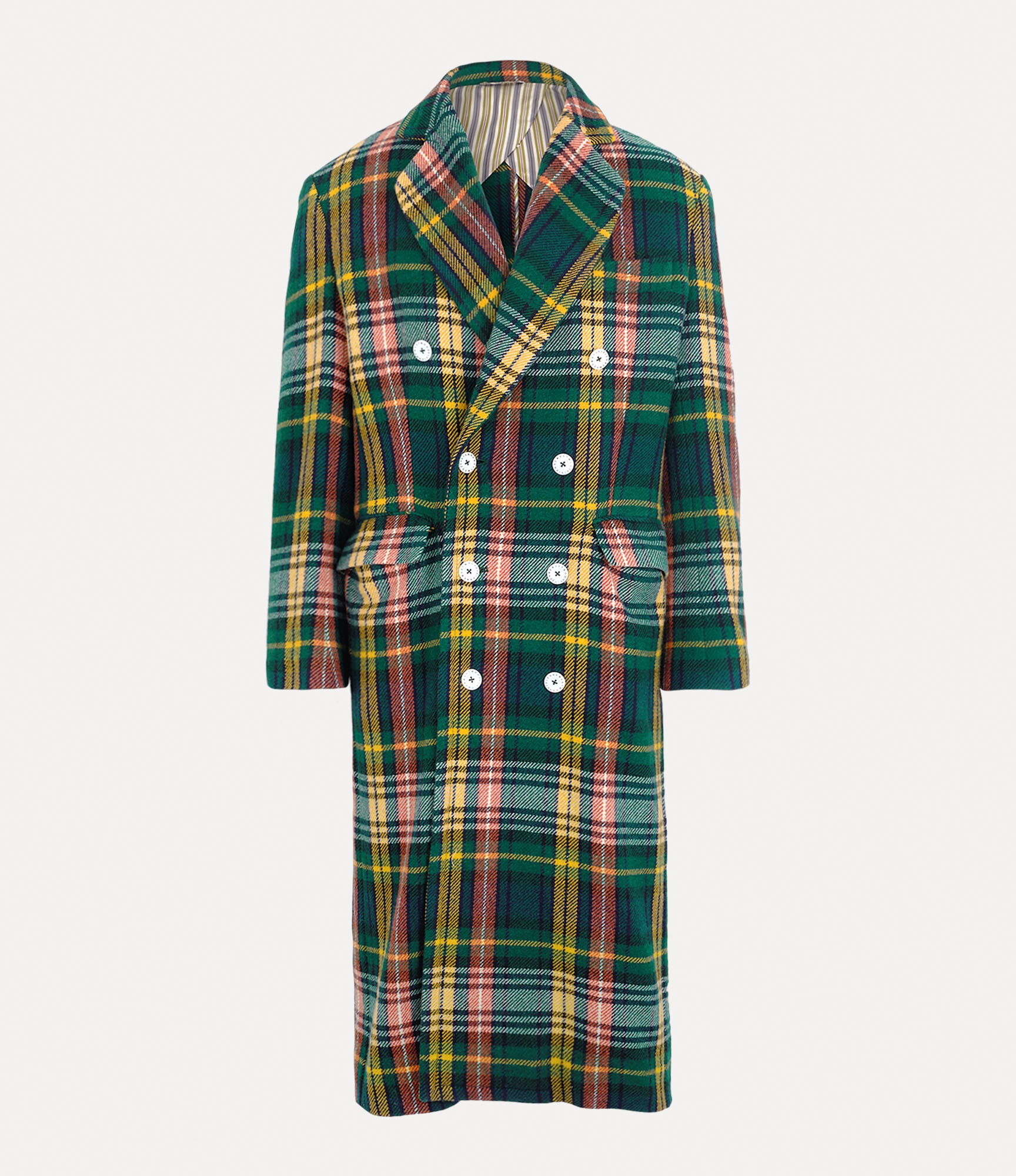 The Man Long Wreck coat, with its double-breasted design, has become a signature style for the house and has been featured in numerous collections over the years. This season, the coat is embellished with a woolen tartan pattern woven into the fabric, reminiscent of a tartan fabric from the Vivienne Westwood Autumn-Winter 1993 'Anglomania' collection. Code: 2D010008-W00XC--MULTI - Button-front design - Long sleeves - Two front flap pockets - Collared neckline - Made in Italy - Notched lapels - Buttoned cuffs - Woven label at neckline - Model is 6’0/183cm and is wearing a size 48 COMPOSITION - 69% Wool - 26% Polyamide - 5% Other fibres
