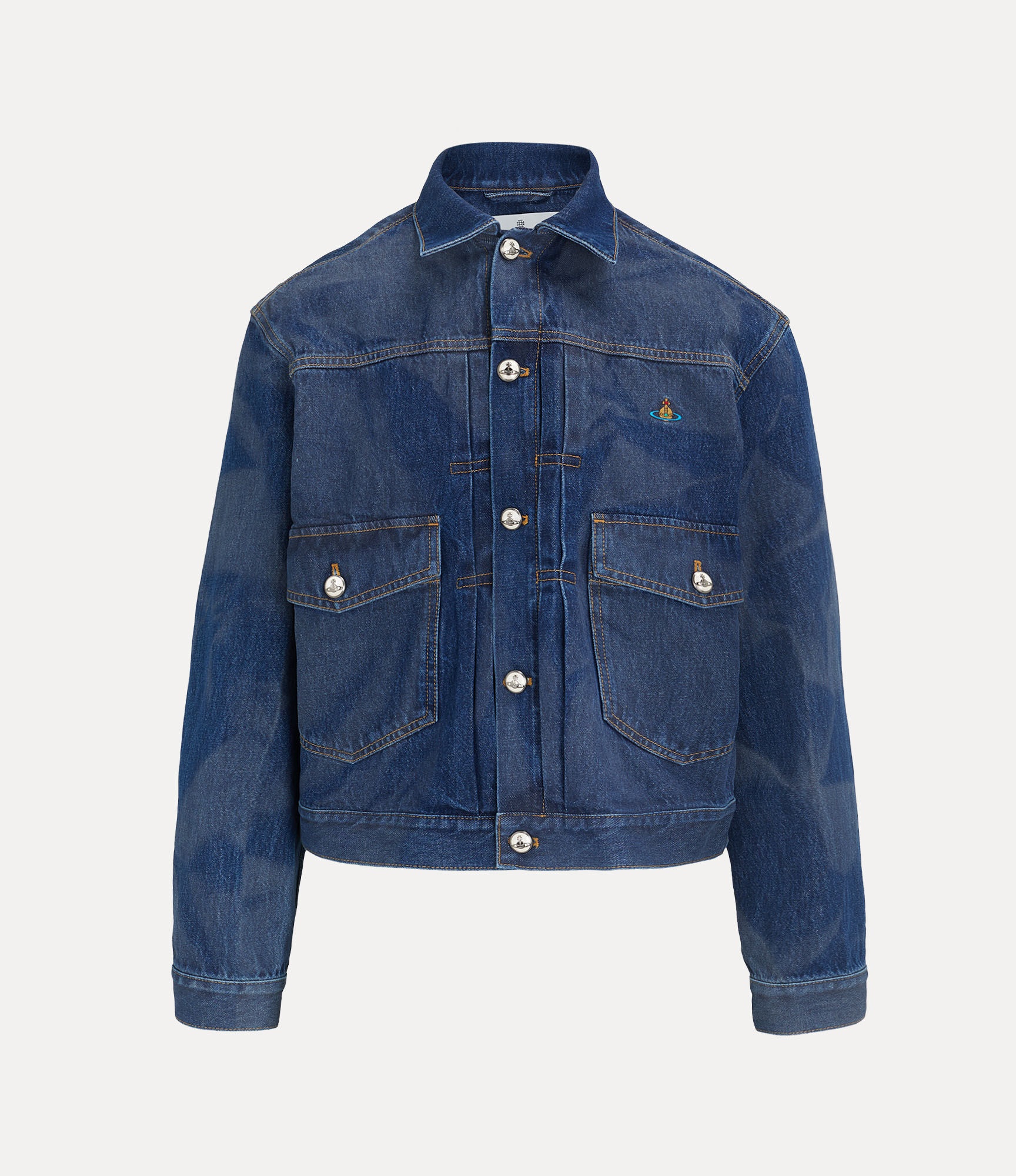 Our signature Marlene jacket showcases a soft denim silhouette with contrasting tan topstitching. The design includes an embroidered orb on the chest and is crafted from sprayed denim speckled with reflective pigment - evoking both the dusty landscape and the silver shoes from the Wizard of Oz. Code: 2801000E-W014L--BLUE - Features orb-embossed buttons - Fits true to size, take your normal size - Classic pointed collar - Reflective design - Front pockets - Woven label at neckline - Model is 6'1.5/187cm and wearing a size M COMPOSITION - 100% Cotton