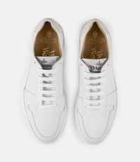 Defined by their subtle style, our men’s low top Classic trainers are crafted from supple white leather and enhanced by Vivienne Westwood branding on the back in suede. Material 100% Calf Leather Code: 7502005241593A401 Details & Features Lace-up Low top Suede Orb back print
