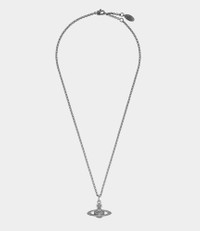 The Mini Bas Relief Pendant has been produced in a delicate hue of yellow. Using the Vivienne Westwood Orb and Satellite ring as the inspiration, this logo represents 'taking tradition (the Orb) into the future (Saturn ring)' thus figuratively describing the work of Vivienne Westwood. This pendant comes encrusted with black crystals in a ruthenium setting, hanging vertically from the chain. Material 100% Brass Code: 63020086S108S108 Details & Features Total chain length: 44-48cm Orb dimensions: H 2cm x W 2.6cm