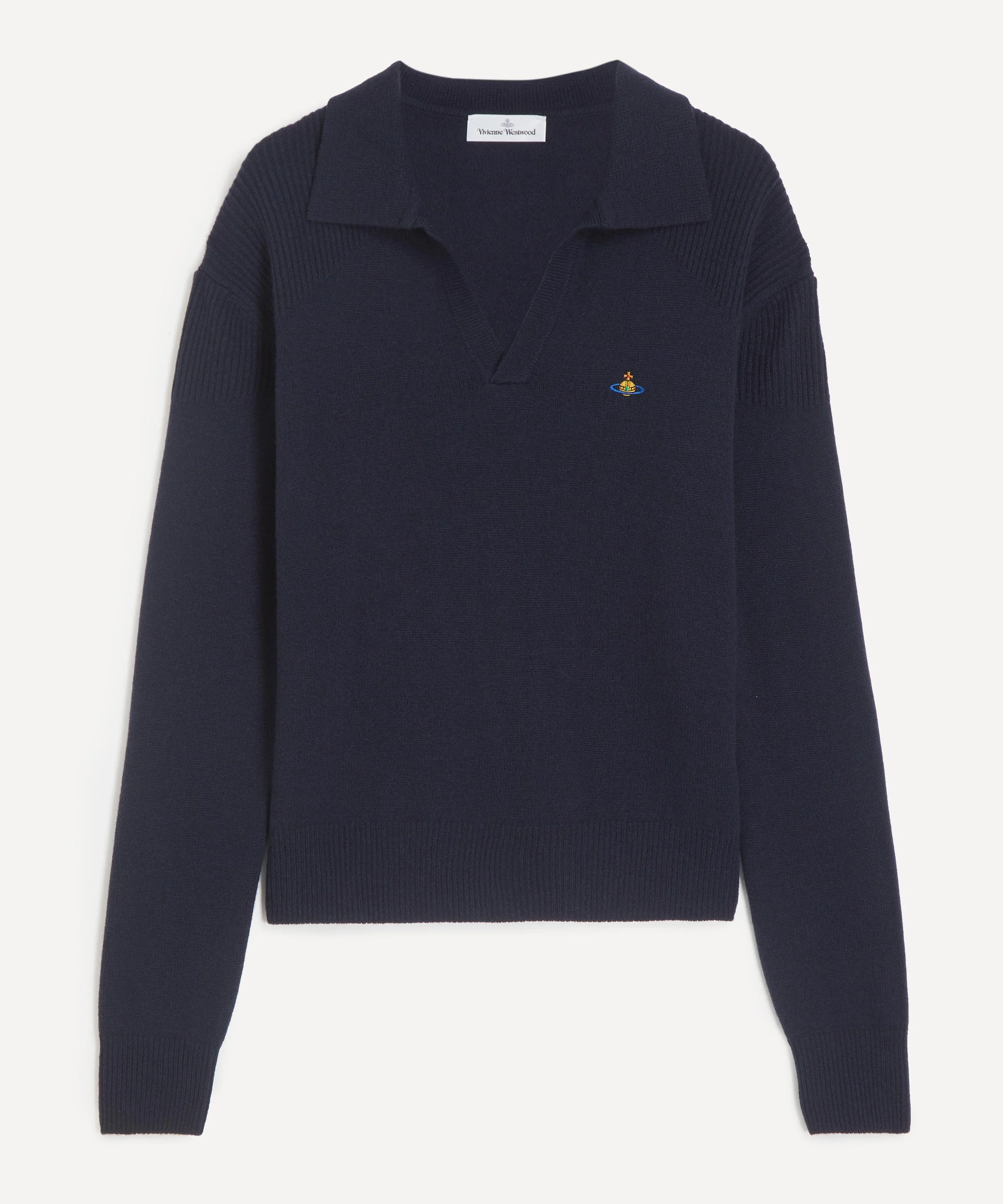 DETAILS Wool-cashmere polo Relaxed fit Long sleeves Flat-knit polo collar Open V-neckline Ribbed trims Orb embroidery SIZE & FIT Model is 186cm/6'1"; Chest: 92cm; Waist: 71cm and wears a size M COMPOSITION & CARE 90% Wool; 10% Cashmere Wash garment separately. Avoid tumble drying