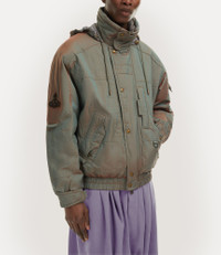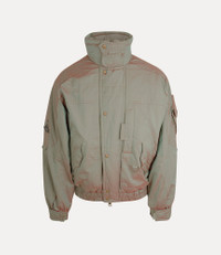 Our Nevada bomber jacket is crafted in a two-tone finish, characterised by a soft green-brown wash that offers a distressed, iridescent effect. Cut to a high funnel-neck silhouette with a secure strap fastening, the piece falls into long raglan sleeves and a slightly cropped, voluminous body. Code: 2203000K-W0189--SAGE-GREEN - Features front flap pockets - Utility sleeve pocket - Concealed front zip - Engraved snap buttons - Elasticated hemline - Elasticated cuffs - Orb detail - Relaxed fit - Boxy silhouette - Model is 6ft/183cm and wears a size 48 - Made in Italy COMPOSITION - 59% Cotton - 41% Polyester