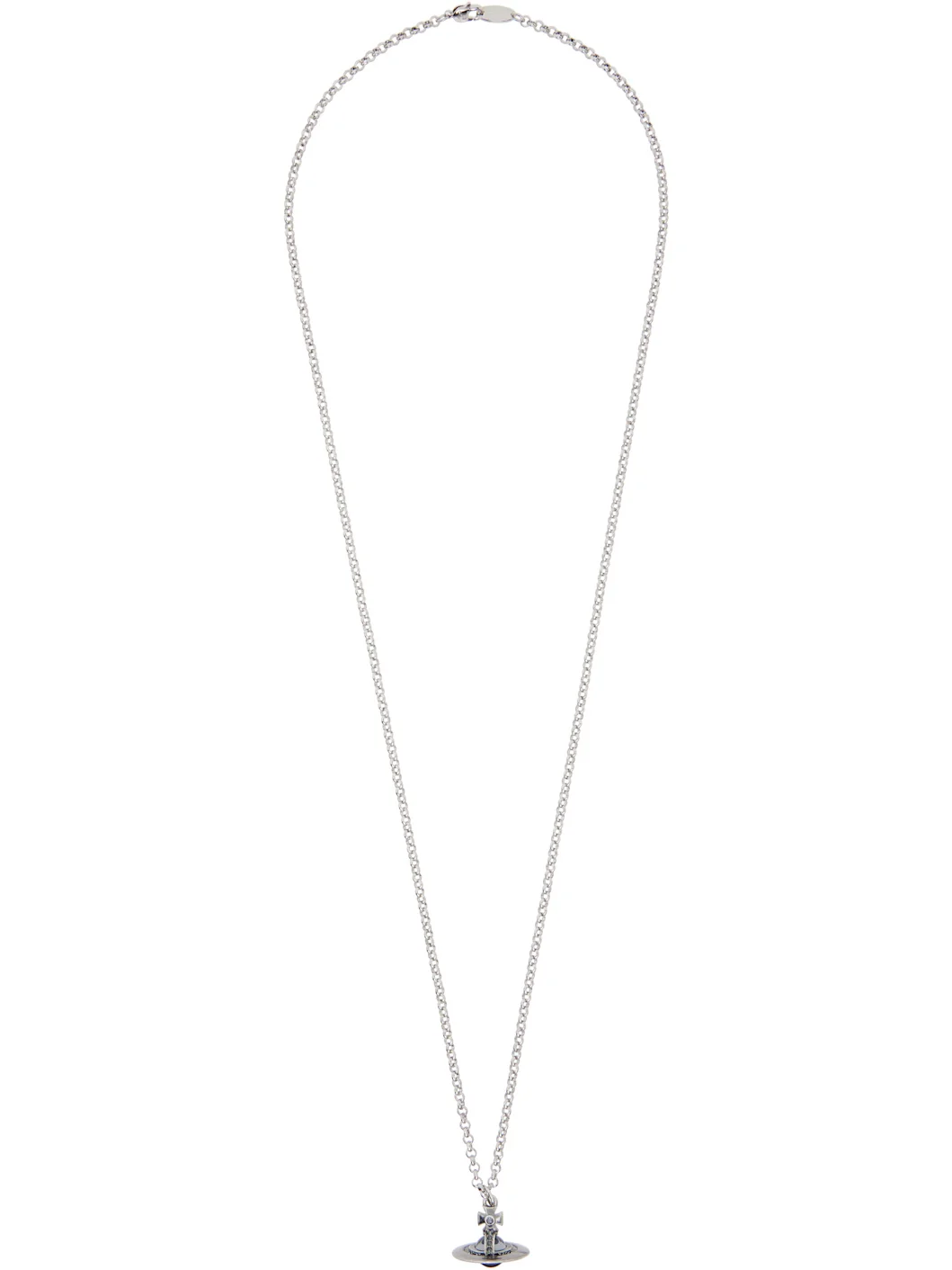 Rolo chain necklace in antiqued silver-tone brass. · Logo pendant with crystals · Logo plaque at lobster-clasp fastening · L32" Supplier color: Oxi silver/Platinum/Silver night crystal/Light Brass, crystal. Made in Thailand 252314M145003
