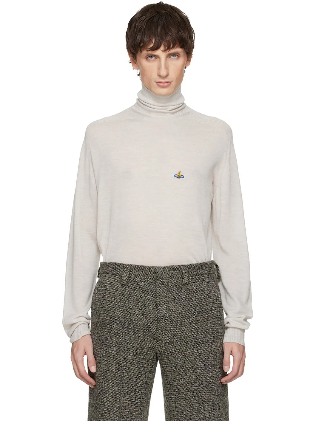 Knit virgin wool turtleneck. · Rib-knit collar, hem, and cuffs · Logo embroidered at chest · Raglan sleeves Supplier color: Grey melange 100% virgin wool. Made in Italy 252314M205001