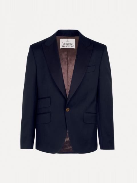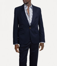 The single-breasted One Button jacket showcases the houses orb motif on the interior silk lining. Tailored to a slim fit, the classic design features a peak lapel, flapped welt pockets and an additional ticket pocket, it has an exposed button fastening at the front. Code: 2301001B-W00QN--NAVY - Made in Italy - One button closure - Internal chest pocket - Buttoned cuffs - Rear single vent - Fits true to size - Model wears a size 48 COMPOSITION - 100% Virgin wool