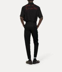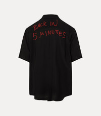 Our Bowling shirt is reimagined with the archival 'Open 24 Hrs' artwork in vivid red script, accompanied by the house’s signature orb motif. Designed with a classic flat collar, the piece is complete with a playful back graphic reading 'Back in 5 minutes'. Code: 2401004K-W01CM--BLACK - Features short sleeves with a relaxed fit - Classic flat collar - Front-button closure - Straight hemline - Boxy silhouette - Printed orb motif on the chest - One front pocket - Model is 6’0/183cm and is wearing a size M - Made in Italy COMPOSITION - 100% Viscose