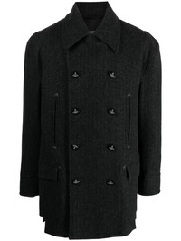 Orb-button double-breasted peacoat Highlights - Charcoal grey - Virgin wool blend - Cotton blend - Signature orb button detail - Pointed flat collar - Double-breasted button fastening - Long sleeves - Buttoned cuffs - Two side inset pockets - Two side flap pockets - Straight hem - We've partnered with good on you â an independent agency that rates how brands perform in relation to their impact on the planet, people and animals, with a multi-criteria rating simplified to a five points scale. in order to be awarded our conscious label, larger brands need to score a minimum of four out of five ('good'), while smaller brands must score at least three out of five ('it's a start'). - This item comes from a brand rated three out of five ('it's a start') by good on you at the time it was added on farfetch. please note, this is a brand-level rating and does not guarantee that this product is made with conscious materials. - Learn more about what makes a product conscious on our conscious criteria page Composition Outer: Virgin Wool 75%, Polyamide 20%, Cashmere 5% Lining: Viscose 100%, Cotton 100%, Acetate 65%, Polyester 35% SIZE & FIT Model measurements Height 6 ft 0 in(1.84 m) Bust/Chest 35 in(89 cm) Hips 37.4 in(95 cm) Waist 28 in(71 cm) FittingInformation Designed for a slim fit, offering a comfortable fit that sits just away from the body The vented hem offers movement at the rear Made from a midweight non-stretch fabric This piece fits true to size – take your usual size