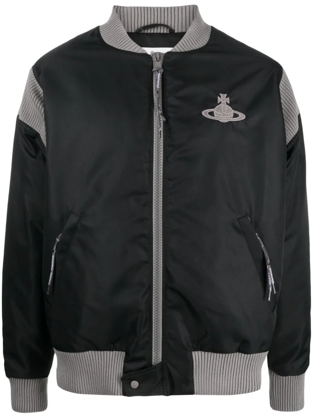 Orb-embroidered cotton bomber jacket Highlights - Black/beluga grey - Cotton - Two-tone design - Signature orb logo embroidery - Baseball collar - Front zip fastening - Two side zip-fastening pockets - Long sleeves - Ribbed cuffs and hem - Straight hem Imported Composition Polyamide 100% Lining: Viscose 100%, Cotton 100%, Acetate 65%, Polyester 35% SIZE & FIT Model measurements Height 6 ft 2 in(1.87 m) Bust/Chest 38.18 in(97 cm) Hips 36.61 in(93 cm) Waist 29.13 in(74 cm) FittingInformation Designed for a regular fit, allowing for a comfortably loose fit throughout the body The ribbed hem offers a close, comfortable fit Made from a padded non-stretch fabric, giving it no natural elasticity This piece fits true to size – take your usual size Washing instructions Dry Clean Only