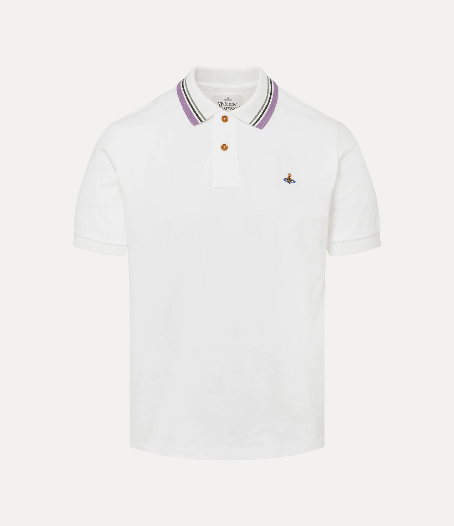 Our Classic polo features a contrasting collar, complete with multi-coloured stripe details. Crafted from soft cotton, the piece offers an embroidered orb motif on the left-hand side of the chest, which symbolises tradition, encircled by the celestial rings of Saturn, symbolising the future. Code: 2H01000P-J0009--WHITE - Features button fastenings - Regular fit - Rib detailing - Tonal stitching - Interior woven label - Stripe detail on the collar - Tonal stitching - Button-neck - Model is 6’1/185.5cm and is wearing a size M COMPOSITION - 100% Cotton