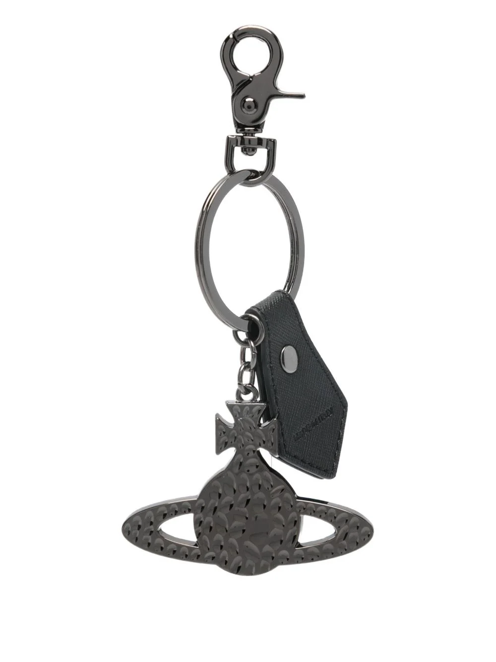 Orb hammered keyring Highlights - Black - Hammered orb charm - Leather tag - Lobster clasp - Saffiano leather Made in Italy Composition Metal 100% SIZE & FIT Measurement LENGTH 6.29 in(16 cm) WIDTH 2.75 in(7 cm)