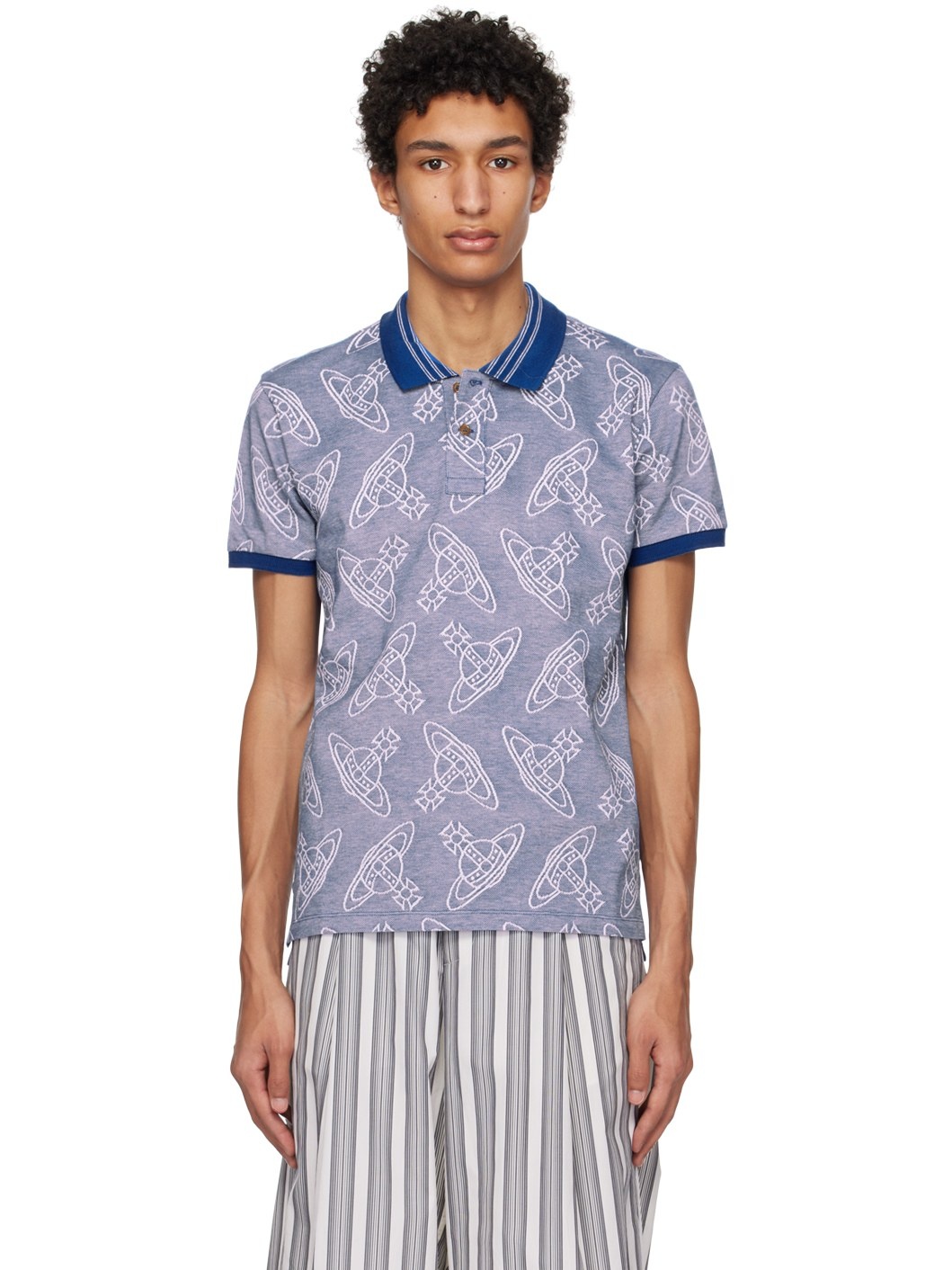 Organic cotton piqué polo. Logo graphic pattern printed throughout. · Stripes at rib knit spread collar and cuffs · Two-button placket · Tennis-tail hem Supplier color: Blue