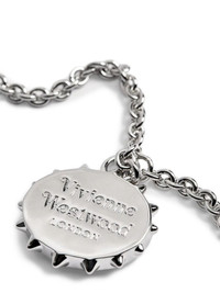 THE ORB-PENDANT NECKLACE PRESENTS CONTEMPORARY JEWELLERY DESIGN THROUGH ITS DISTINCTIVE SILVER-TONE CONSTRUCTION. THE ROUND PENDANT FEATURES AN INTEGRATED LOGO MOTIF AND STRIKING SPIKE DETAIL, CREATING VISUAL DEPTH AND CHARACTER. A CHAIN-LINK SUSPENSION ENSURES SECURE WEAR WHILST MAINTAINING ELEGANT PROPORTIONS THAT COMPLEMENT BOTH MINIMALIST AND LAYERED STYLING APPROACHES. SILVER-TONE FINISH RESISTS TARNISHING, MAINTAINING ITS LUSTRE THROUGH REGULAR WEAR. THE PENDANT'S GEOMETRIC DESIGN BRIDGES CASUAL AND FORMAL CONTEXTS, OFFERING VERSATILE ACCESSORISING FOR THOSE SEEKING STATEMENT JEWELLERY WITH REFINED EXECUTION. AN INVESTMENT PIECE THAT ELEVATES EVERYDAY ENSEMBLES WHILST REMAINING SOPHISTICATED ENOUGH FOR SPECIAL OCCASIONS.