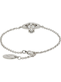 Cable chain bracelet in silver-tone brass. · Logo charm with crystal at face · Logo plaque at adjustable lobster-clasp fastening · L7" Supplier color: Platinum/Crystal Brass. Made in Thailand 252314M142022