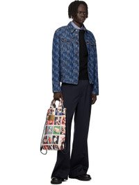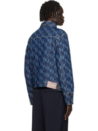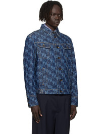 Non-stretch organic cotton denim jacket. · Laser-printed logo pattern throughout · Button tab at spread collar · Button closure · Flap and welt pockets · Buttoned barrel cuffs · Leather logo patch at back hem · Cinch tabs at back hem · Logo-engraved hardware · Contrast stitching in tan Supplier color: VW frame laser denim 100% cotton. Made in Italy 252314M177000